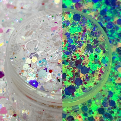 Sassy Cow Co. Firefly Chunky Glow in the Dark White, Pink, and Opal Glitter